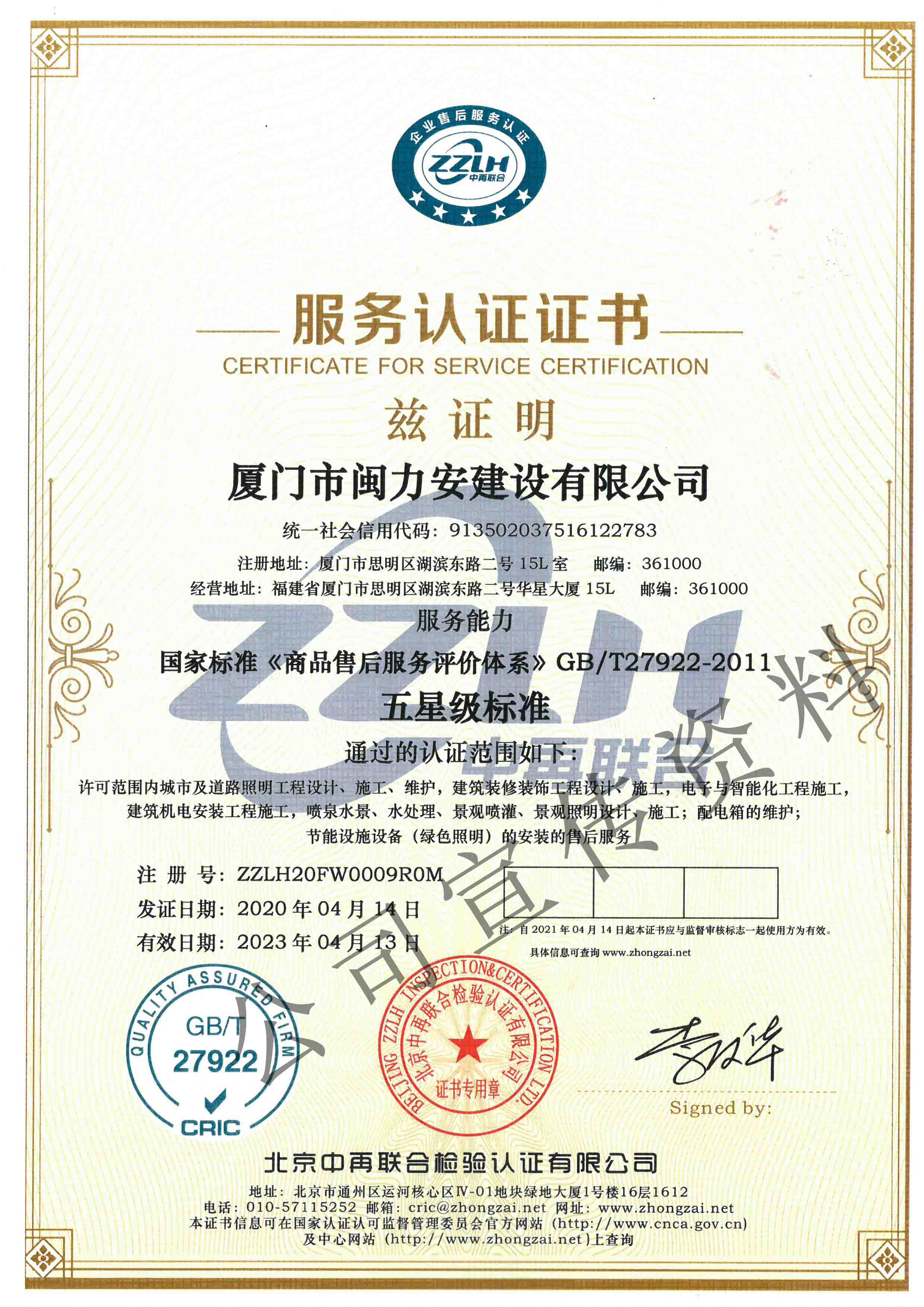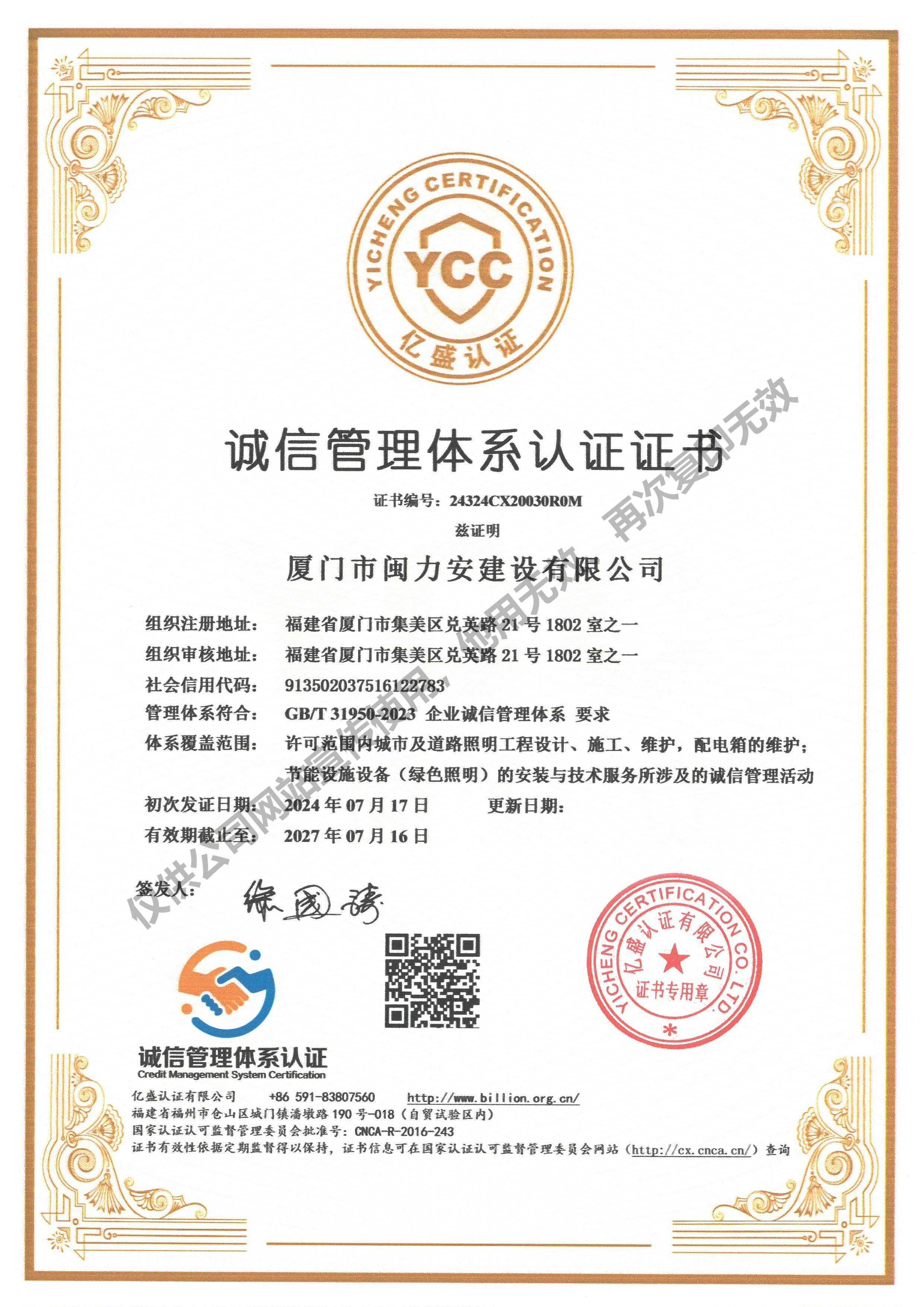 祝賀閩力安取得:誠信管理體系認(rèn)證證書